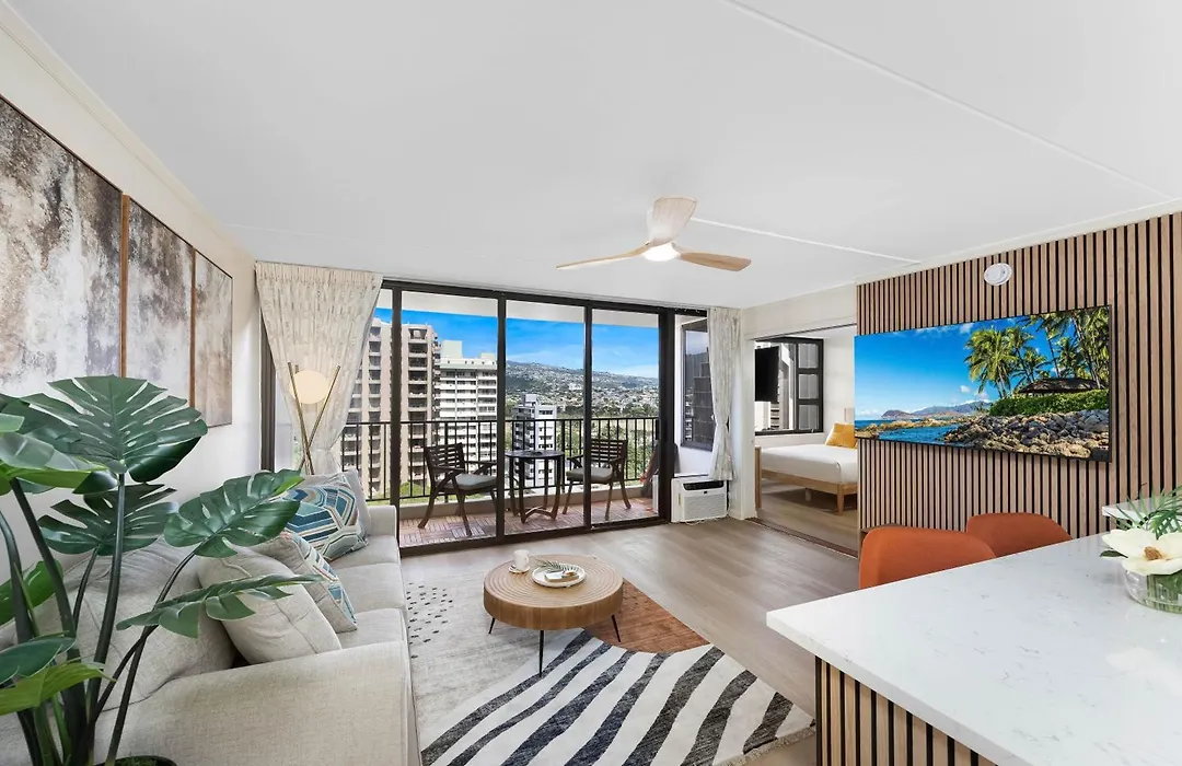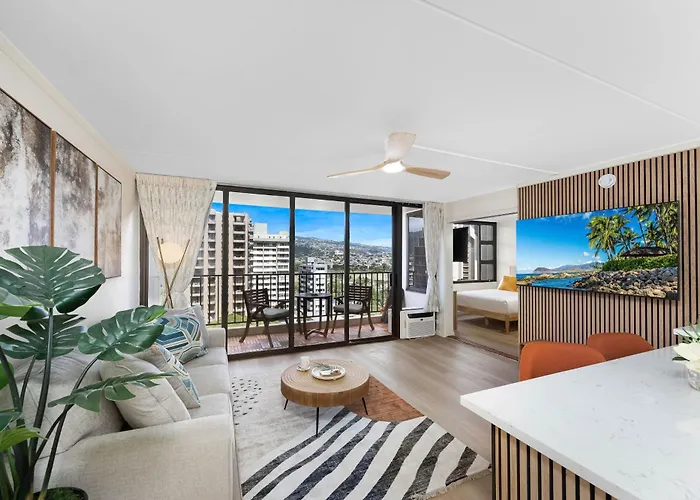56m²のホノルル1Br Mountain View With Balcony, Pool & Free Parkingアパートメントから歩いてわずか6分離れたQueens Surf Beach Parkなどの市内の観光スポットへ行きやすいです。 ビジネスとレジャーの両方でWi-Fiを利用することができます。